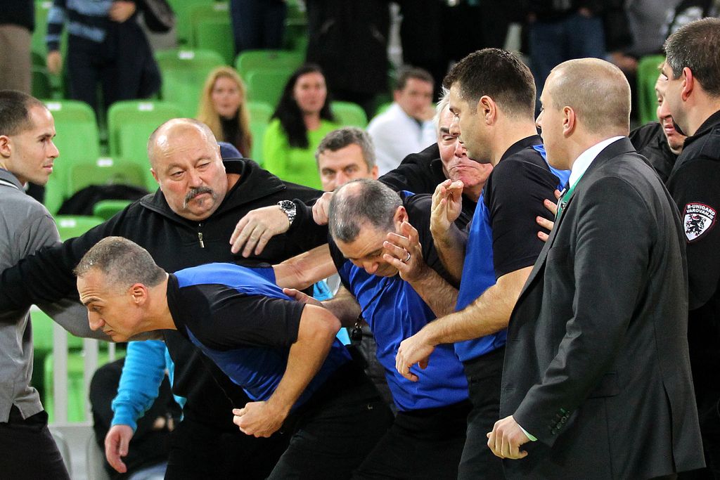 Predin je incident povzročil na tekmi z Budivelnikom, ko je fizično obračunal z enim od sodnikov. Nanje so se sicer zaradi spornih odločitev na tekmi spravili gledalci, Predin, ki je tekmo spremljal s sedeža tik ob robu igrišča, pa je enega od njih udaril. Dogodek je znani glasbenik sicer takoj obžaloval in se zanj klubu tudi opravičil. Kajpak je tudi sam prejel kazen - doživljenjsko prepoved ogleda vseh tekem evrolige in evropskega pokala.
