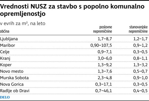 Ugotovil je, da v Sloveniji plačujemo nadomestilo za stanovanjske stavbe s popolno komunalno opremljenostjo po 0,30 do 3,20 evra na kvadratni meter na leto, največ v Kopru, sledita Ljubljana in Maribor, najmanj pa v Celju in Novi Gorici. Znotraj občine so razponi pri stanovanjskih nepremičninah nizki, najpogosteje od 0,50 do enega evra na kvadratni meter.