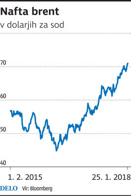 Cena nafte raste zadnjih šest mesecev skoraj brez resnega popravka in je dosegla raven iz leta 2015. Sod brenta se je povzpel čez 70 dolarjev, WTI pa na dobrih 66. Od junija se je nafta podražila že za 60 odstotkov.