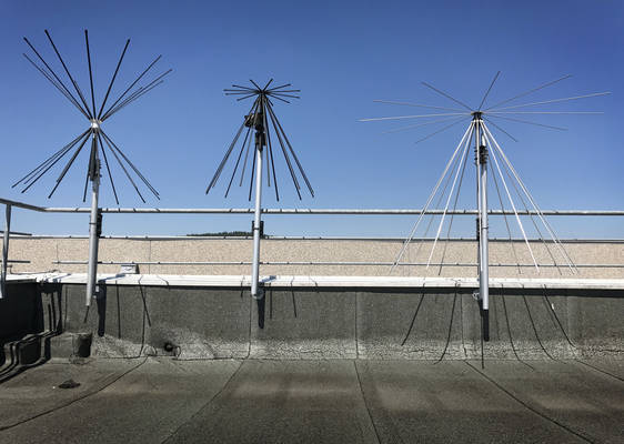 Na strehi je urejen avtomatiziran sistem za merjenje antenskih smernih diagramov in ojačanja z azimutno/elevacijskim rotatorjem ter dvema 15 metrov visokima stebroma. Foto: Leon Vidic/Delo