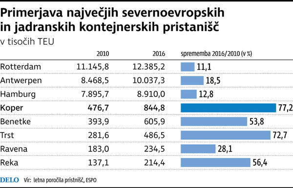 Luka Koper je lani prvič pretovorila več kot 22 milijonov ton tovora, dvakrat več kot na Reki, a hkrati dosega le dobro tretjino pretovora v Trstu, ki je osredotočen na precej manj donosen tekoči tovor. Po zadnjih podatkih je tržaško pristanišče leta 2014 ustvarilo le nekaj več kot 50 milijonov evrov prihodkov, medtem ko so ti na ravni skupine v Luki Koper lani dosegli skoraj 200 milijonov evrov. A prednost bi se ob političnem vmešavanju v poslovanje Luke Koper in nadaljnjih zapletih pri gradnji drugega tira lahko kmalu začela zmanjševati.
