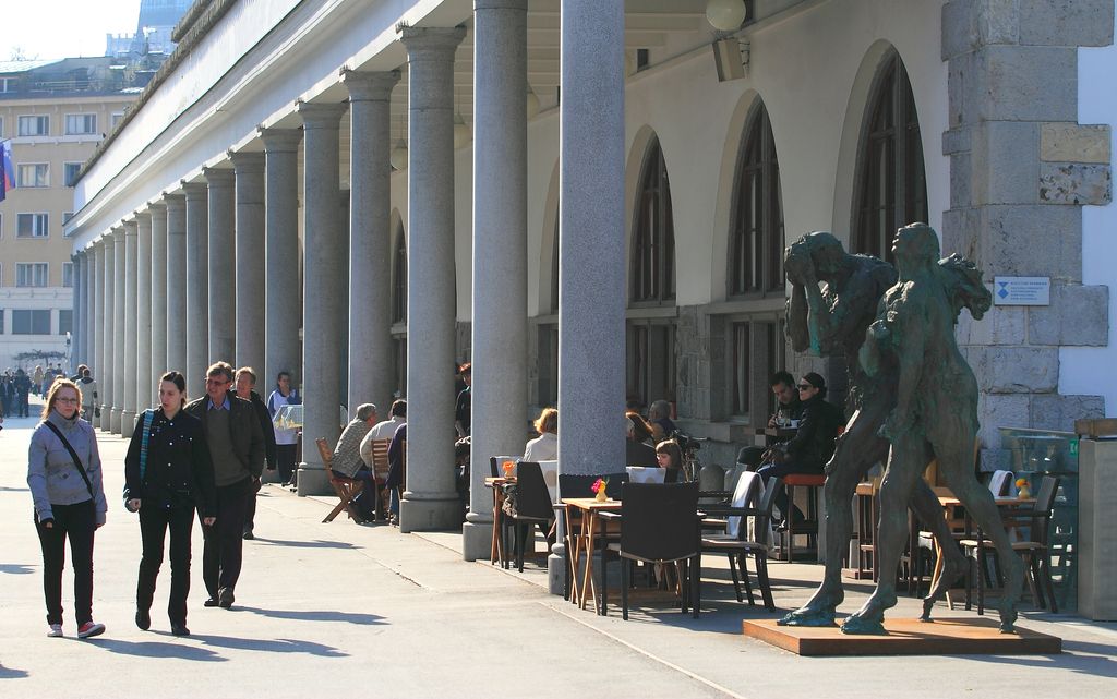 Pod arkadami Plečnikove tržnice je nocoj pod okriljem muzeja tranzitornih umetnosti MoTA zaživela zvočna galerija Arkade.