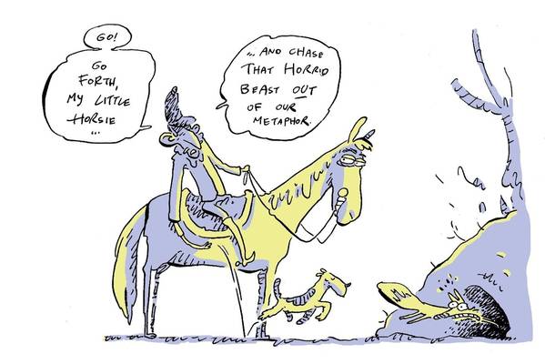 Toda zakaj? Ker je metaforo plasiral eden najvplivnejših evolucionistov sploh ter tako s kopičenjem citatov zlahka prekosil vso konkurenco. In zakaj si je za primerjavo izbral prav foksterierja? Ker se v Angliji s temi psički po gosposko goni lisice. Lovci jahajo na konjih kar s kužki v naročju, pri čemer so bili ti nalašč gojeni v smer podobnosti z velikimi kopitarji. Gentlemanom se je namreč bojda zdelo blazno posrečeno, če po prijezdu do brloga na tla spustijo majhno kopijo konjička, ki lov na zvito zver spelje do bridkega konca.