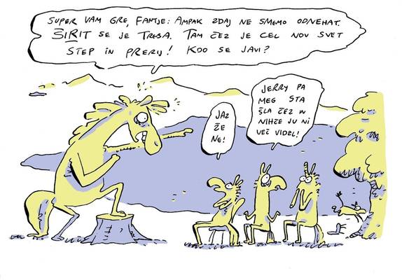 Toda pazite: Evropejci so imeli zdrav razlog za prepričanje, da se je konj razvil pri nas. Ko je Kolumb našel Ameriko, jih tam namreč niso premogli, pri nas pa jih je jahal vsak bedak. Jap. Zadnji odposlanec ameriške tovarne je pri nas preživel, zavladal ruskim stepam in se dal udomačiti predpotopnemu Evropcu, medtem ko je osnovno firmo v ZDA nekaj izbrisalo z obličja zemlje.