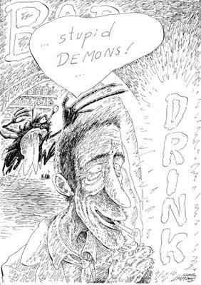 Še najdlje v smislu spoja asociacij in končnega produkta sem za zdaj prišel izhajaje iz skice tegale pijančka,