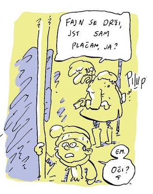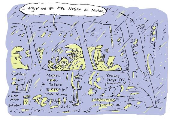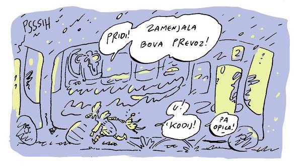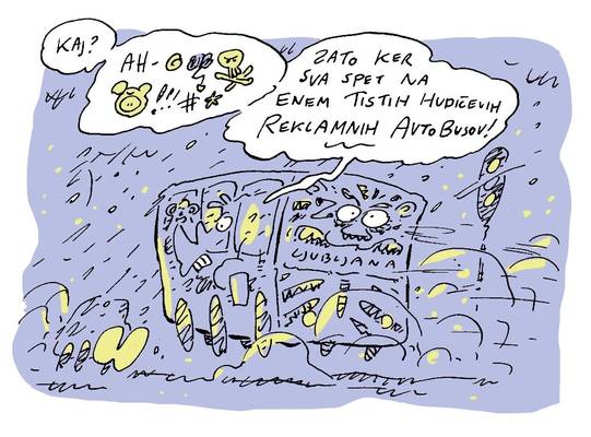 Spet dva tedna mimo, spet en strip o premikanju skozi prestolnico. Ker je vmes zapadel sneg, zdaj šaltamo na avtobus, pri tem pa se nalahno obregnemo ob oglaševalsko prostitucijo javnega prevoza.