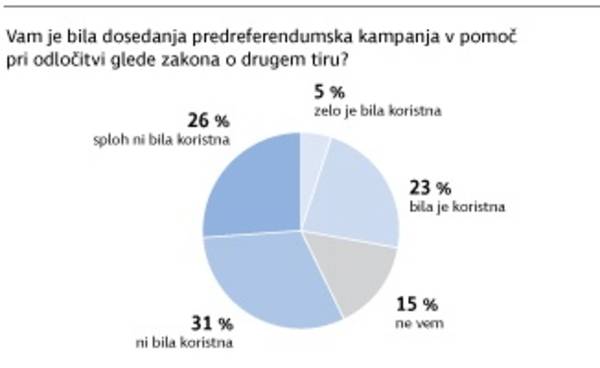 Dosedanja kampanja torej ni pritegnila večje pozornosti slovenske javnosti, zato ne preseneča, da se slabim 60 odstotkom anketirancev kampanja ni zdela koristna, le slabim 30 odstotkom pa se je zdela koristna.