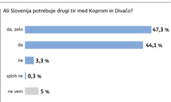 Če to povežemo z vprašanjem, ali Slovenija potrebuje drugi tir (več kot 90 odstotkov anketirancev je menilo, da ga potrebuje), to pomeni, da vprašanje nujnosti gradnje železniškega tira do Luke Koper ni pomembno oziroma je ta argument, ki ga uporablja vlada v kampanji, manj pomemben.