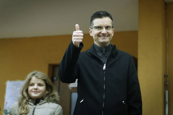 Marjan Šarec je na volišče odšel z družino. Foto: Leon Vidic/Delo