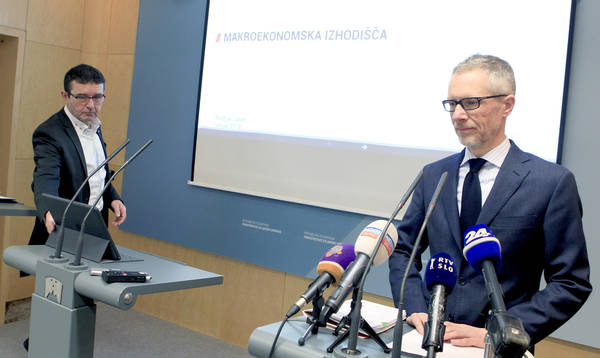Boris Koprivnikar in Boštjan Vasle sta dopoldne predstavila makroekonsko sliko države. Foto: Roman Šipić/Delo
