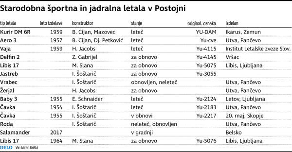 Na letališču Aerokluba Postojna in v bližnji vasici Belsko hranijo letalci 14 starodobnih letal. Večina je jadralnih letal nekoč priznanih vrhunskih domačih konstruktorjev in domače izdelave, starih 50 in več let. Dve sta motorni letali slovenskih konstruktorjev, izdelani v nekdanji skupni državi Jugoslaviji: letali aero 3 in kurir. Obe sta leteči, kar je za letala te vrste predvsem na območju nekdanjih socialističnih držav prava redkost. Razen postojnskih je nekaj lesenih starih letal raztresenih še drugod po Sloveniji, tudi zaprašenih na podstrešjih aeroklubov in v zasebni lasti posameznih pilotov. Prav nobene spodbude ni, da bi se ta letala ohranila. Ohranjanje starodobnikov pa je zelo razvito na zahodu, bodisi v letečem stanju bodisi v muzejih, saj gre za neprecenljivo tehnološko-kulturno dediščino.