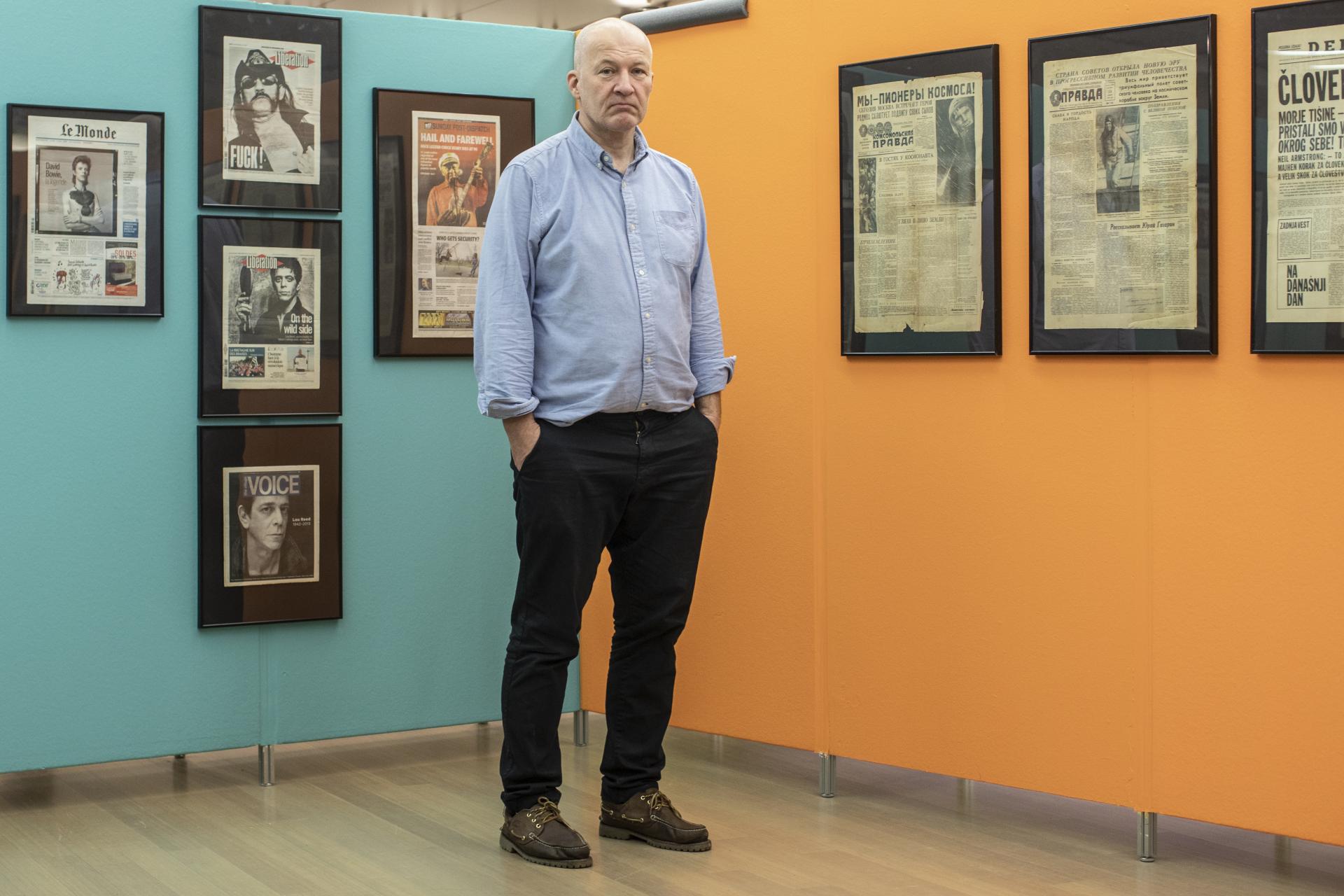Nocoj smo v prvem preddverju Cankarjevega doma odprli razstavo starih časopisov iz zbirke Alija Žerdina z naslovom Časopis, prvi odtis zgodovine. S tem se je Muzej tiska z izborom 200 izvodov starih časopisov po skoraj dveh letih delovanja na facebooku preselil tudi v analogni svet. FOTO: Voranc Vogel/Delo