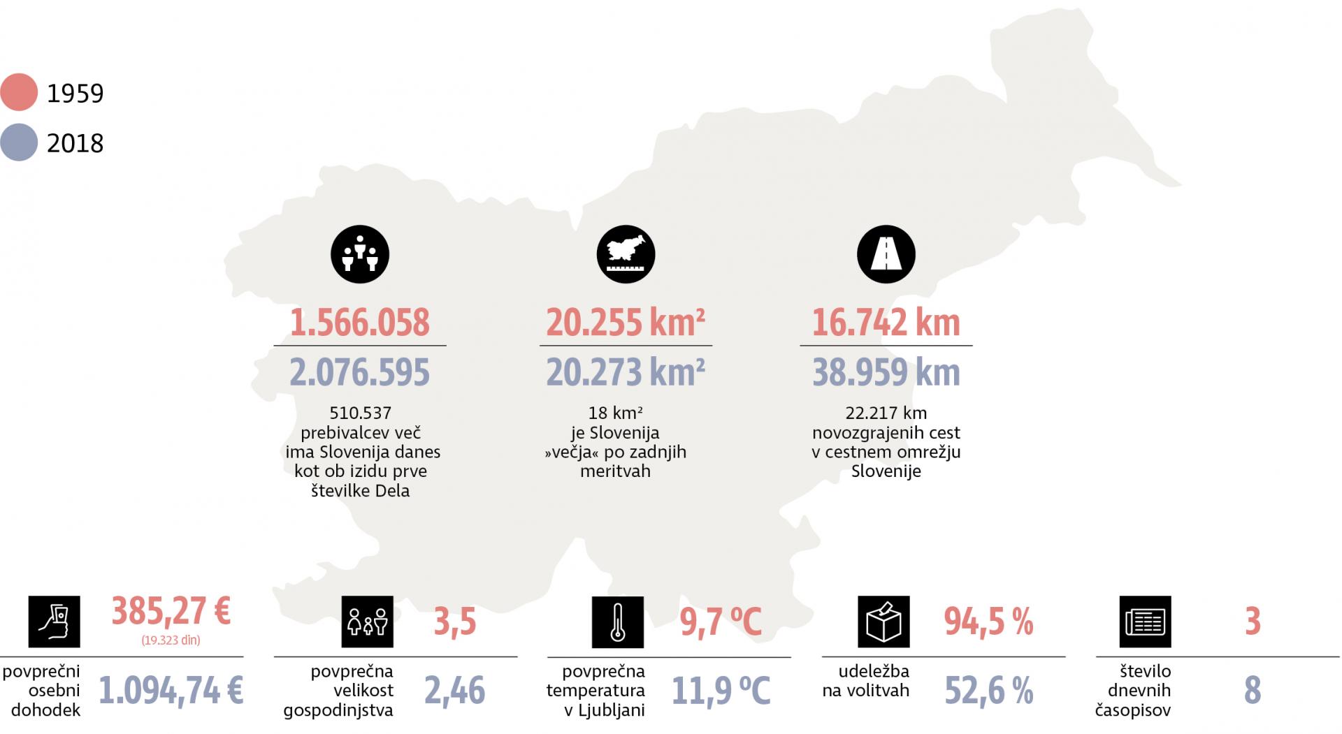 Slovenija ima danes dobrega pol milijona več prebivalcev. Država je tudi večja in toplejša.