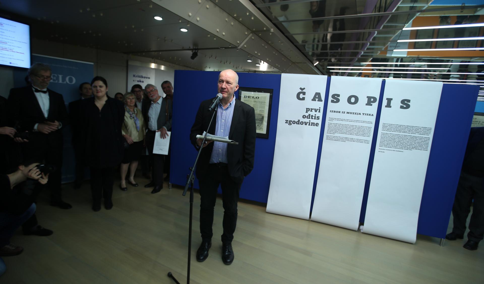 Med približno 500 starimi tiskovinami, ki so se nabirale glede na najdbe in zbiralčeve finančne zmožnosti, jih je na prvo razstavo Muzeja tiska (v oblikovni zasnovi studiabotas) uvrščenih 200 v štirinajstih tematskih sklopih. Ker je ta postavljena ob 60-letnici časopisa Delo, je sledil ključnim dogodkom 20. stoletja in 21. stoletja: poletu Jurija Gagarina v vesolje, umoru Johna F. Kennedyja, pristanku na Luni, smrti Josipa Broza - Tita, ki je bila poseben svetovni medijski dogodek, povezan z Ljubljano, slovenski osamosvojitvi, 11. septembru 2001, izvolitvi Donalda Trumpa … »Posebna pozornost je namenjena tudi posebnim številkam Dela v šestdesetih letih, zlasti ob napadu na Češkoslovaško, pa tudi v devetdesetih letih, zaradi mojega osebnega veselja pa so izpostavljene tudi svetovno znane revije ob smrti rokovskih zvezdnikov Elvisa Presleyja, Johna Lennona, Jimija Hendrixa, Janis Joplin, Jima Morrisona, Davida Bowieja,« je dodal.