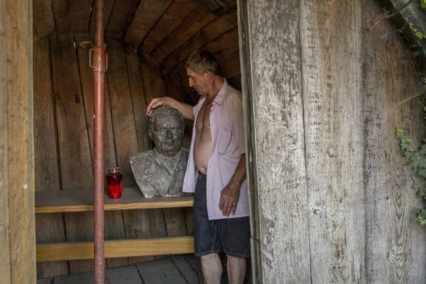 Namesto vina Drago Markovec v sodu raje hrani spomin na stare čase - Titov doprsni kip. Foto: Voranc Vogel/Delo