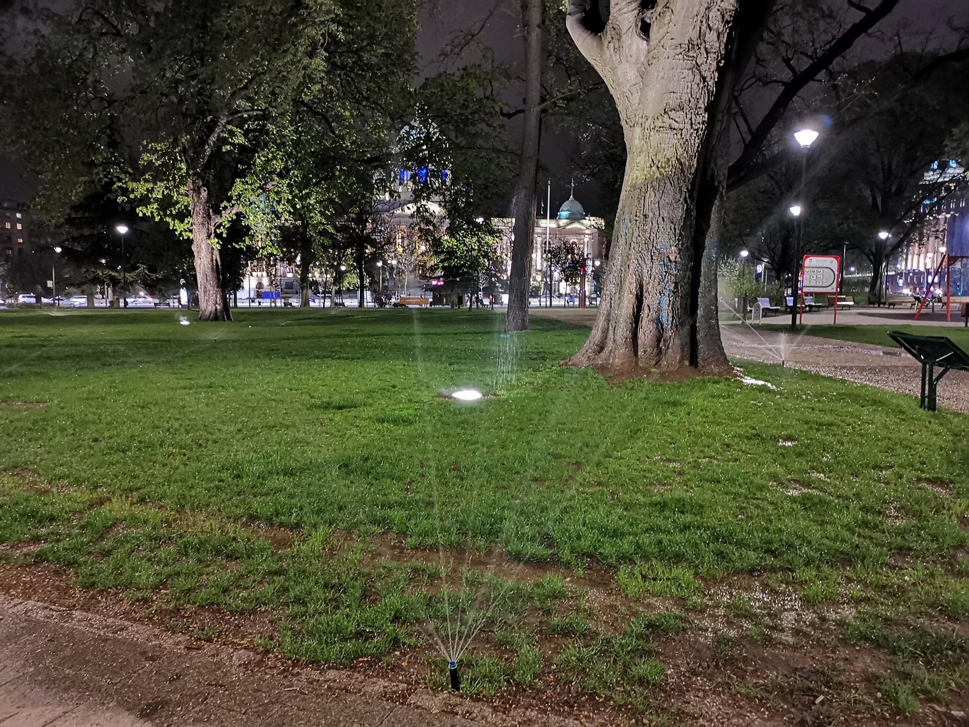 V zgradbi skupščine Srbije na Pionirskem trgu sredi glavnega mesta so sinoči nekateri poslanci vladajoče Srbske napredne stranke delali vso noč in tako »varovali« zgradbo pred opozicijo, je poročala televizijska postaja N1. Na lastne oči smo se prepričali, da so dolgo v noč zalivali tudi celotni Pionirski park, čeprav je dva dni zaporedoma deževalo in zalivanje ni bilo nujno potrebno. Tako so verjetno preprečili, da bi si ljudje na razmočenem terenu pred skupščino postavili šotore.
