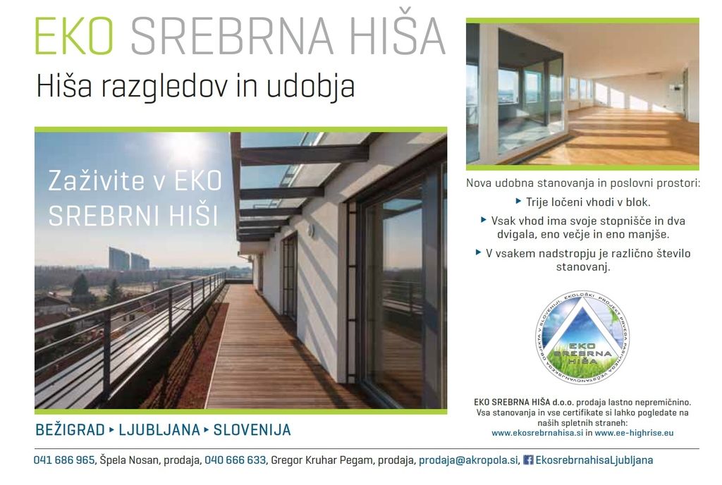 Eko Srebrna hiša je prva pasivna visokotehnološka večstanovanjska visoka gradnja v Sloveniji in bližnjem regionalnem okolju. Predstavlja pogled v prihodnost, saj je bivanje v pasivnih bivanjskih enotah trend, ki je v Evropi že uveljavljen sodobni bivanjski standard. V stavbi so uporabljeni materiali evropskih standardov z vsemi potrebnimi certifikati. Izvedene so bile tudi meritve energijske učinkovitosti, ki jo kontrolira EU v sklopu projekta EE - Highrise in po pravilniku o metodologiji izdelave in izdaji energetskih izkaznic stavb objekt spada v najučinkovitejši energijski razred A1 (8 kwh/m2a). Ekološki ...