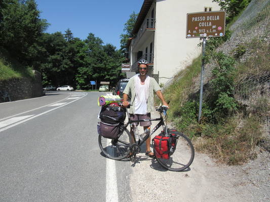 Počasi se daleč pride in tudi na vrh prelaza sem prikolesaril, čeprav me je že precej »kuhalo«. Kratek oddih, malica in kava ter obvezno fotografiranje pred spustom v dolino, na jadransko stran Apeninov, proti Ravenni. Čeprav se je ura že približevala poldnevu in je bila pripeka huda, je spust predstavljal svojevrstno (kolesarsko) naslado.