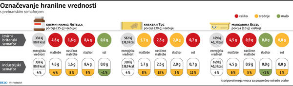 V čem je prednost predlaganega semaforja pred zdajšnjim sistemom označevanja hranilne vrednosti, smo vprašali vseh šest podjetij, odgovore sta poslala le Unilever in Nestle Adriatic. Pri prvem glavno izboljšavo vidijo v barvnem označevanju, ki potrošnika »intuitivno informira o za zdravje pomembnih hranilih v hrani in pijači«. Porcijski pristop po njihovem bolj realistično odseva dejanske prehranjevalne navade ljudi, saj številnih živil, denimo olivnega olja in margarine, ne zaužijemo 100 gramov. »Po zdaj veljavnem sistemu bi margarina in maslo dobili rdečo luč za vsebnost nasičenih maščob, čeprav vsebujeta zelo različne vrednosti. To je rezultat zaokrožanja zaužitih količin na sto gramov.«