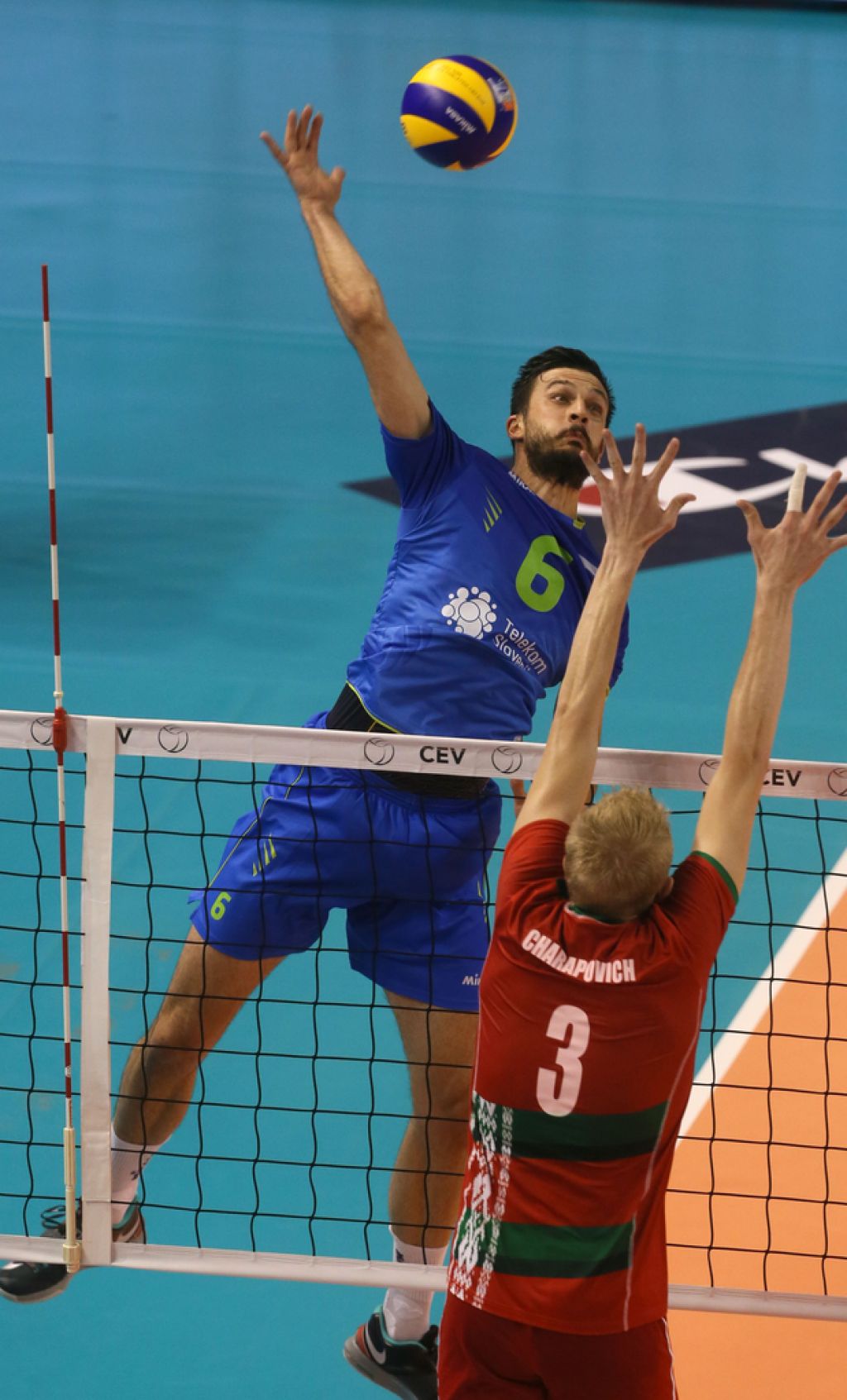 Belorusom se je začel sistem sesuvati že pred prvenstvom. Nekaj ključnih igralcev na čelu z odličnima sprejemalcema Alehom Ahremom in Sjarhejem Antanovičem, ki sta si zadnja leta kruh služila na Poljskem in v Turčiji, je zaradi nesoglasij s samosvojim selektorjem Viktorjem Sidelnikovom ostalo doma, prav tako pa na parket ni stopil Andrej Radzjuk, na katerega so se Slovenci še najbolj temeljito pripravljali, nastop naj bi mu preprečila poškodba. Tako je moral namesto njega na sprejemalski položaj vskočiti siceršnji korektor Pavel Avdočanka, ki je bil lahka tarča slovenskega začetnega udarca, obenem je bil domala odrezan iz napada.