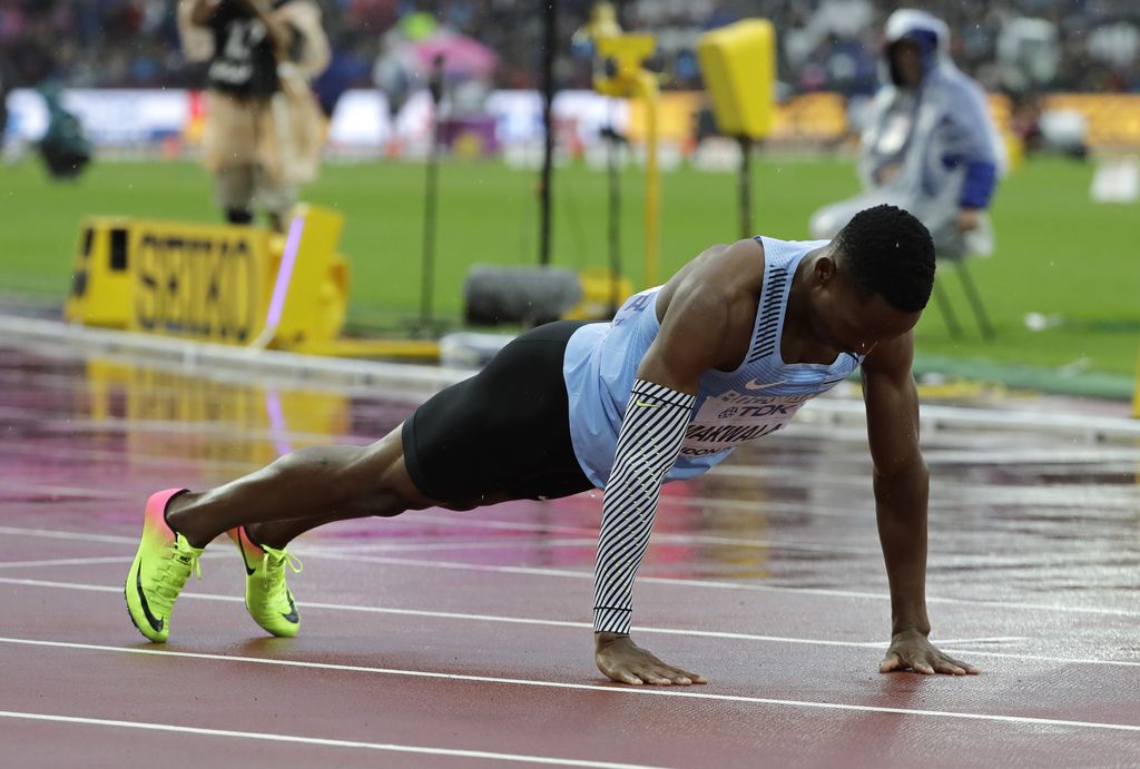 V predteku je po prihodu v cilj napravil še nekaj sklec, nato pa so ga mimo cone za novinarje, tako da ni mogel dajati izjav, pospremili s stadiona. Makwala je moral teči 20,53 ali hitreje, da bi s tem napredoval v polfinale.