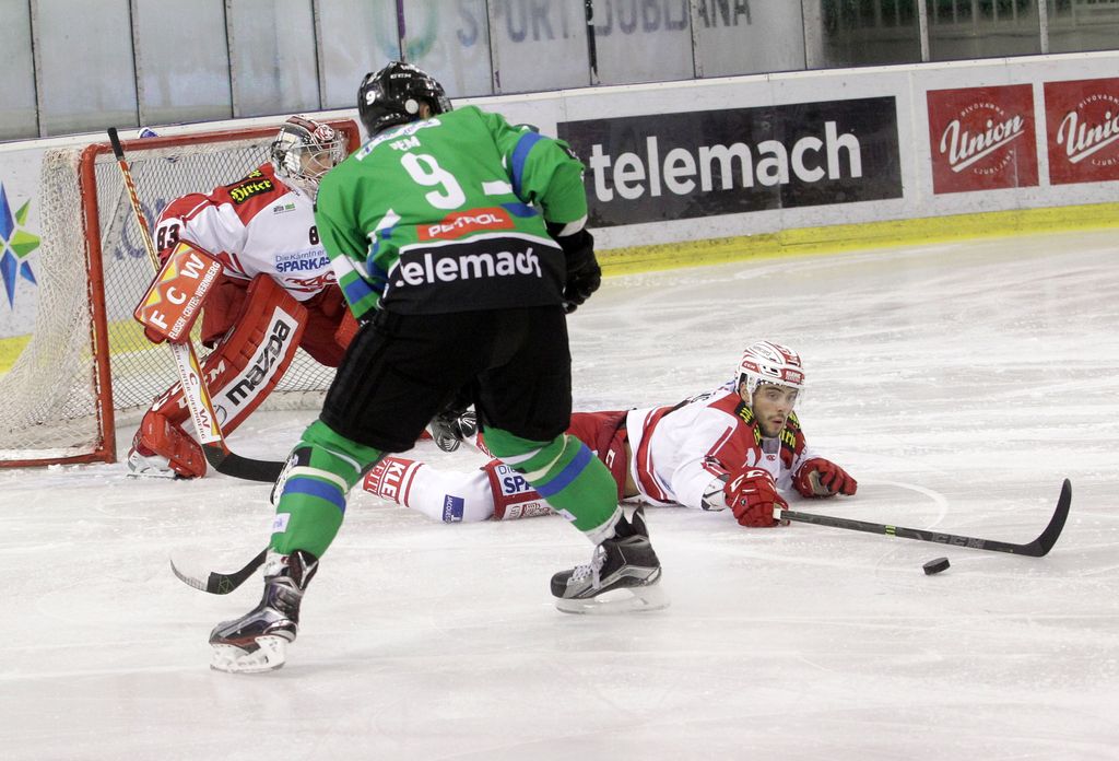 Uvodne minute sinoči v Tivoliju niti niso napovedovale poraza, saj je Olimpija povsem spodobno začela, Andrej Hebar, nedvomno eden vodilnih Olimpijinih napadalcev po uvodnem mesecu te sezone v EBEL, je bil blizu vodilnega gola, a je takrat poskus ustavila vratnica. Kako malo potrebujejo za uspeh hokejisti iz koroške metropole, pa je bilo hitro jasno, ko so svojo uvodno prednost igralca več z golom kronali že po desetih sekundah. Pozneje so se za vodstvo s 3:1 še bolj podvizali – v igri petih proti štirim so plošček spravili v domačo mrežo po pičlih osmih sekundah.