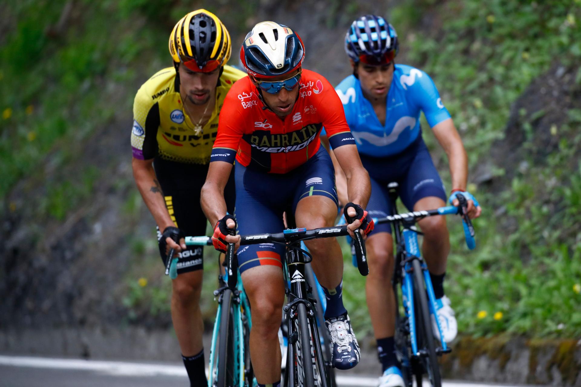 Ko se je Caruso umaknil, je Nibali poizkusil s prvim napadom, a sta mu Roglič in Landa takoj sledila, potem pa je tempo nekoliko padel. Precej več škode kot Nibali je z napadom naredil Richard Carapaz, ki si je takoj privozil 50 metrov prednosti, za njim pa se je v lov spet pognal Italijan, ki je s seboj potegnil tudi Rogliča, Miguela Angela Lopeza in Mikela Lando.