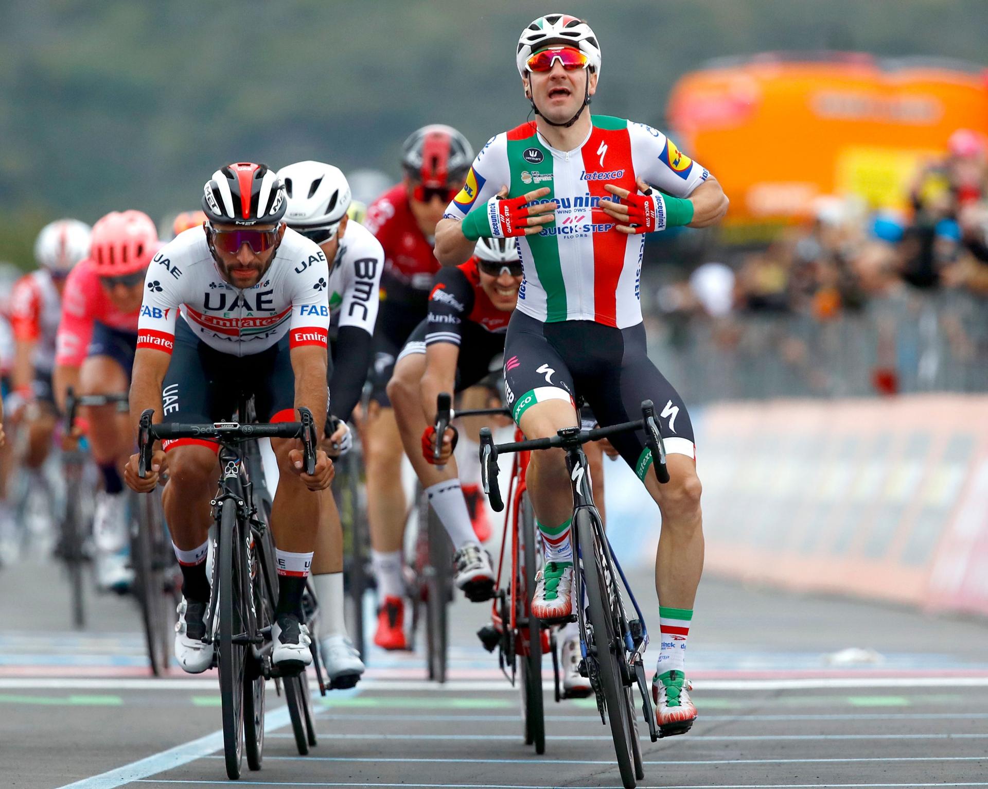 Včeraj se je taktika ekipi Deceuninck v šprintu povsem podrla, zato je moral Viviani priznati premoč Ackermannu. V Orbetellu si kaj podobnega italijanski državni prvak ni dovolil, počakal je na pravi trenutek in bil v zaključku prepričljivo najhitrejši, najbilžje mu je prišel Gaviria. A se je Italijan prehitro veselil zmage. Sodniki so morda prestrogo dosodili, da je v šprintu s spremembo smeri v levo nepravilno oviral Mattea Moschettija, tako da so mu zmago odvzeli in jo pripisali Kolumbijcu Gavirii.