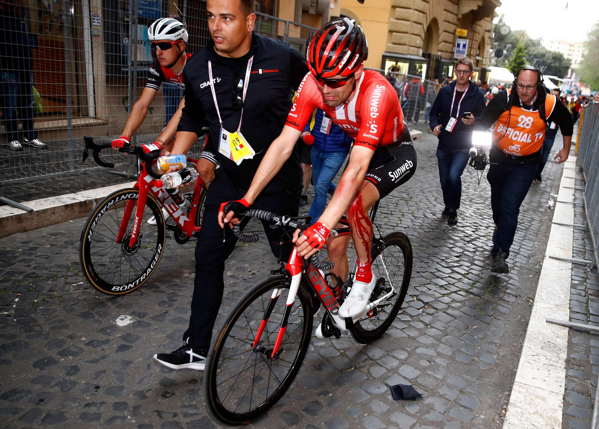 Sledilo je mučno čakanje na »metulja iz Maastrichta«, ki je v cilj prišel štiri minute za Rogličem. Podrobni zdravniški pregledi so nato pokazali, da jo je odnesel brez zloma, zgolj z oteklino. A v skupnem seštevku ima štiri minute in pol zaostanka, sanj o rožnati majici je zanj bolj ali manj konec, lahko se tudi zgodi, da bo predčasno zapustil italijansko pentljo, če bi z nadaljevanjem tvegal hujšo poškodbo in tako ogrozil še svoje možnosti na Touru.