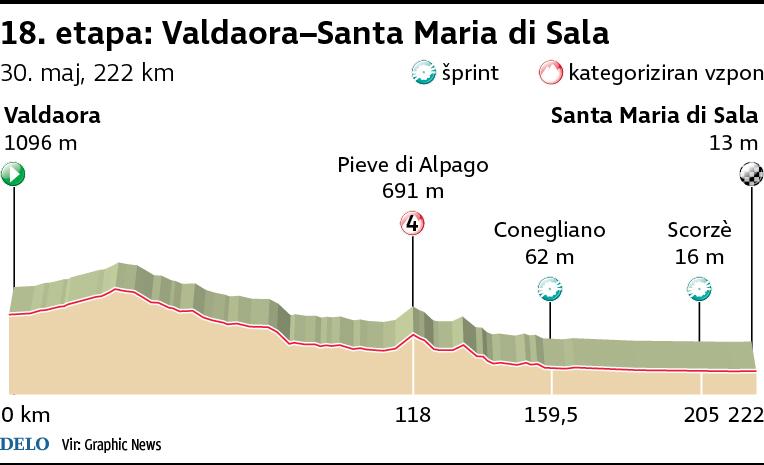 V prvih dveh tednih popolna podoba slovenskega Gira se je v zadnjih dneh nekoliko skrhala, kljub temu pa niti Polanc niti Roglič zagotovo ne bosta obupala. Danes ju čaka 222 kilometrov dolga ravninska etapa, ki bo zadnja priložnost za šprinterje na letošnji dirki po Italiji, v petek in soboto pa bo karavana znova zavila v gore, kjer se bodo boji za visoka mesta v skupnem seštevku nadaljevali.