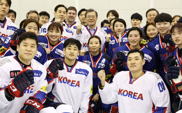 V Modro hišo (predsedniško palačo) je ta teden prispelo več sto zahtev, nekatere je podpisalo več deset tisoč državljanov. Uradni Seul je namreč v sredo objavil, da bodo na otvoritveni slovesnosti predstavniki obeh Korej korakali skupaj pod zastavo »korejske združitve«, sestavili bodo tudi skupno žensko hokejsko moštvo.