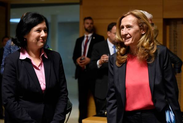 Evropska komisarka za pravosodje Věra Jourová (levo) s francosko ministrico za pravosodje Nicole Belloubet. Foto: AFP