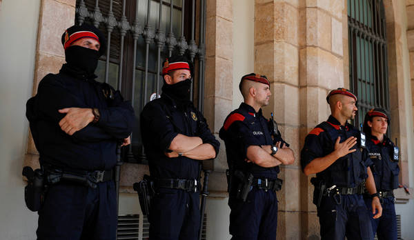 Na ulicah, tudi pred parlamentom, na postajah … je bilo veliko policije, tako katalonske kot tudi španske. Foto: Reuters