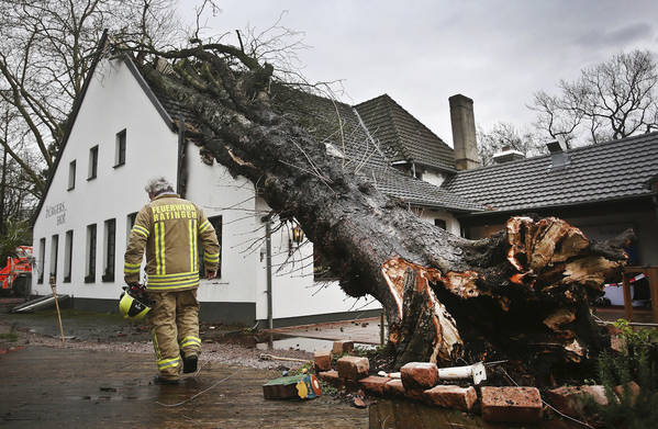 Neurje je danes doseglo tudi Nemčijo, kjer so namerili sunke vetra s hitrostjo do 120 kilometrov na uro. Iz več zveznih dežel poročajo o podrtih drevesih in močnem deževju, ki ovira promet. Foto: David Young/AP