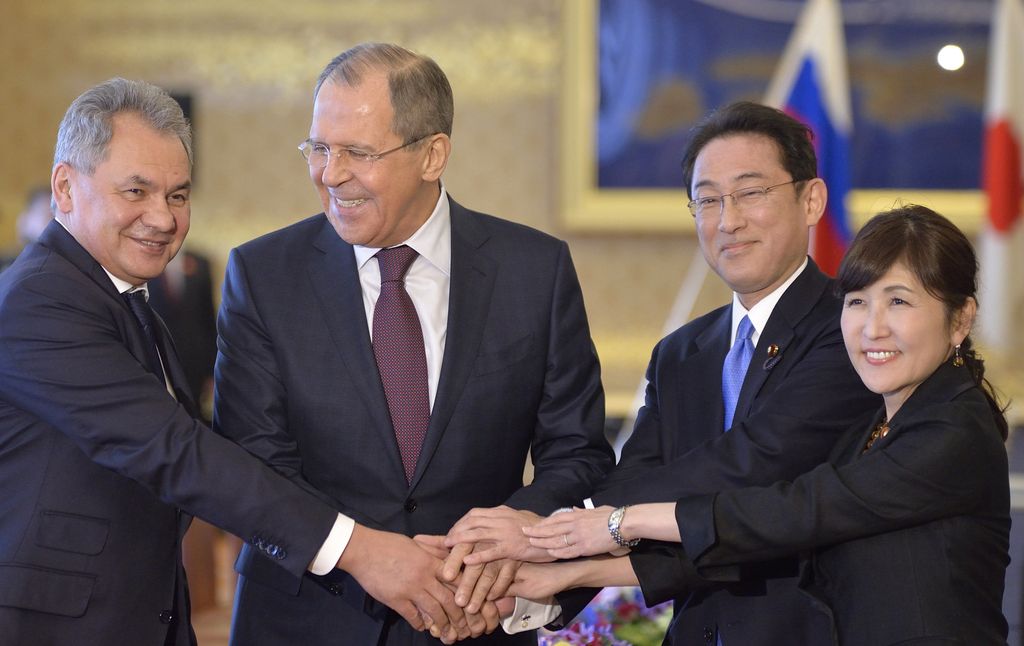 Današnje srečanje v »formatu 2 plus 2« je bilo prvo po izbruhu ukrajinske krize, med katero se je Japonska pridružila zahodni sankcijski vojni proti Rusiji. Toda v zadnjem času so se rusko-japonski odnosi izboljšali, japonski premier Šinzo Abe, ki se bo konec aprila v Moskvi srečal z ruskim predsednikom Vladimirjem Putinom, je lani kar dvakrat obiskal Rusijo. Zaradi Rusije in Japonske se do danes ni uradno končala druga svetovna vojna, saj še zdaj nista podpisali mirovnega sporazuma. Ključna sporna točka so še vedno štirje otoki, ki jim Japonci pravijo Severna ozemlja, v Rusiji, ki si jih je skladno s tajnim dogovorom, sklenjenim z zahodnimi zavezniki na tedaj še ruskem polotoku Krim, ob koncu druge svetovne vojne prilastila Sovjetska zveza, pa jih imenujejo Južni Kurili.