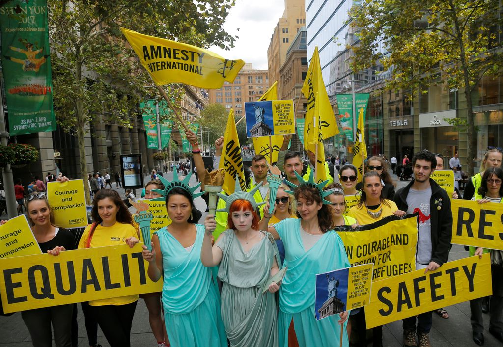 Prvotna ustavitev sprejemanja beguncev in prepoved vstopa državljanov sedmih pretežno muslimanskih držav je sprožila zmedo na letališčih, množične proteste liberalnega dela države in odmeve po svetu. Uprlo se ji je več zveznih držav, na čelu z zvezno državo Washington, tamkajšnji zvezni sodnik pa je ustavil njeno izvajanje, dokler ne bi presodili, ali je skladna z zakonodajo. Drugi predsedniški ukaz Donalda Trumpa poskuša obiti ostrino prvega, tako da prepoved zajema le nove prosilce za vstopne dokumente. Lobiranje v zakulisju je z liste pretežno muslimanskih držav umaknilo Irak, s katerim se skupaj bojujejo proti teroristom Islamske države. Še vedno ostaja ustavitev sprejemanja beguncev, le da za Sirce ne več za nedoločen čas, ampak tako kot za druge, 120 dni.