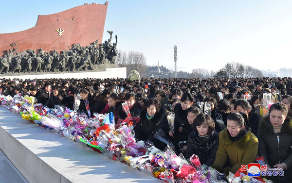 Poklon nekdanjemu voditelju Severne Koreje Kim Džong Ilu, ki je umrl pred šestimi leti. Foto: KCNA via Reuters