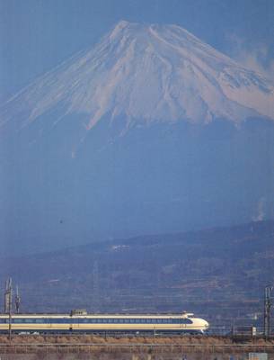 Takle pogled na sveto goro Fudži se je ponujal kraljici Elizabeti II., ko je s hikarijem brzela proti Tokiu. Najbrž se ji ni niti sanjalo, v kakšnih duševnih stiskah so bili njeni gostitelji ... Foto: Arhiv Železniškega muzeja SŽ